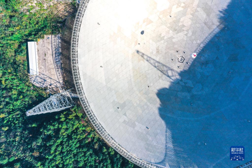 12月17日拍攝的“中國(guó)天眼”全景(維護(hù)保養(yǎng)期間攝,無(wú)人機(jī)照片)。