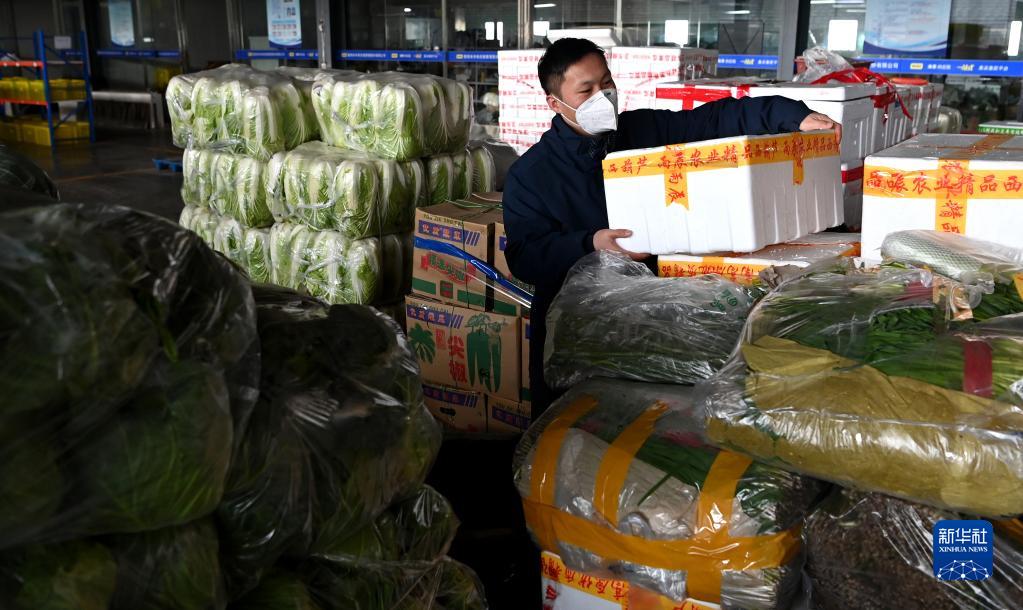 陜西米禾供應鏈管理股份有限公司的工作人員在搬運蔬菜(12月19日攝)。
