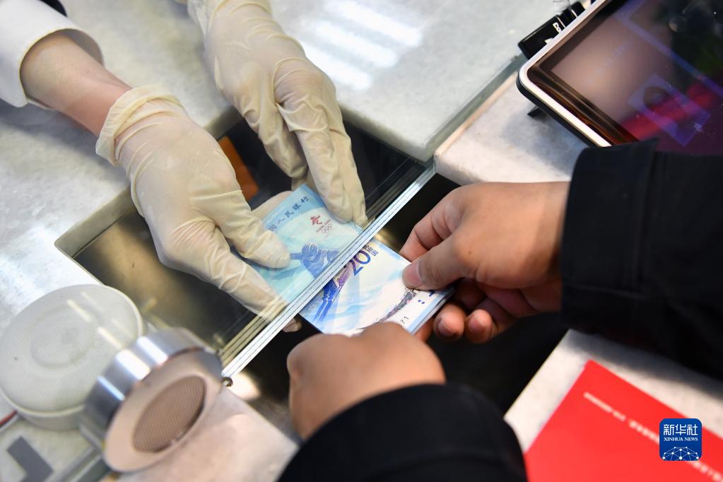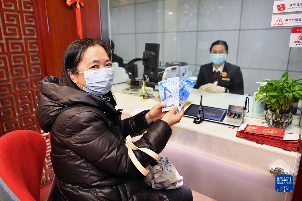 12月21日,市民在中國工商銀行北京西客站支行兌換第24屆冬季奧林匹克運動會紀念鈔。