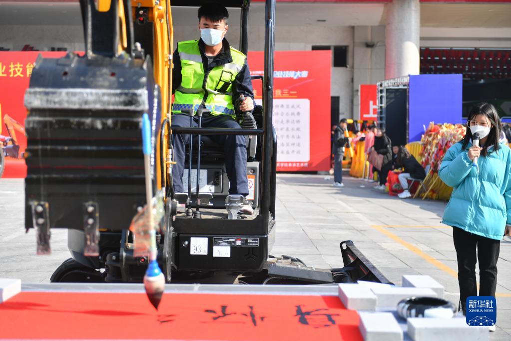 12月22日,在長沙賀龍體育中心,技術人員在職業(yè)技能展演現(xiàn)場表演“挖掘機寫毛筆字”。 12月20日至22日,長沙市第一屆職業(yè)技能大賽在湖南長沙舉行。本次大賽以“技攀高峰,能行天下”為主題,選手們圍繞移動機器人、互聯(lián)網(wǎng)營銷、汽車技術、烘焙等30個競賽項目各展絕活、切磋技藝,大賽期間同步舉辦職業(yè)技能展演活動。 新華社記者 陳澤國 攝