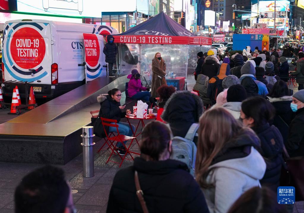12月20日,人們?cè)诿绹?guó)紐約時(shí)報(bào)廣場(chǎng)排隊(duì)等待進(jìn)行核酸檢測(cè)。