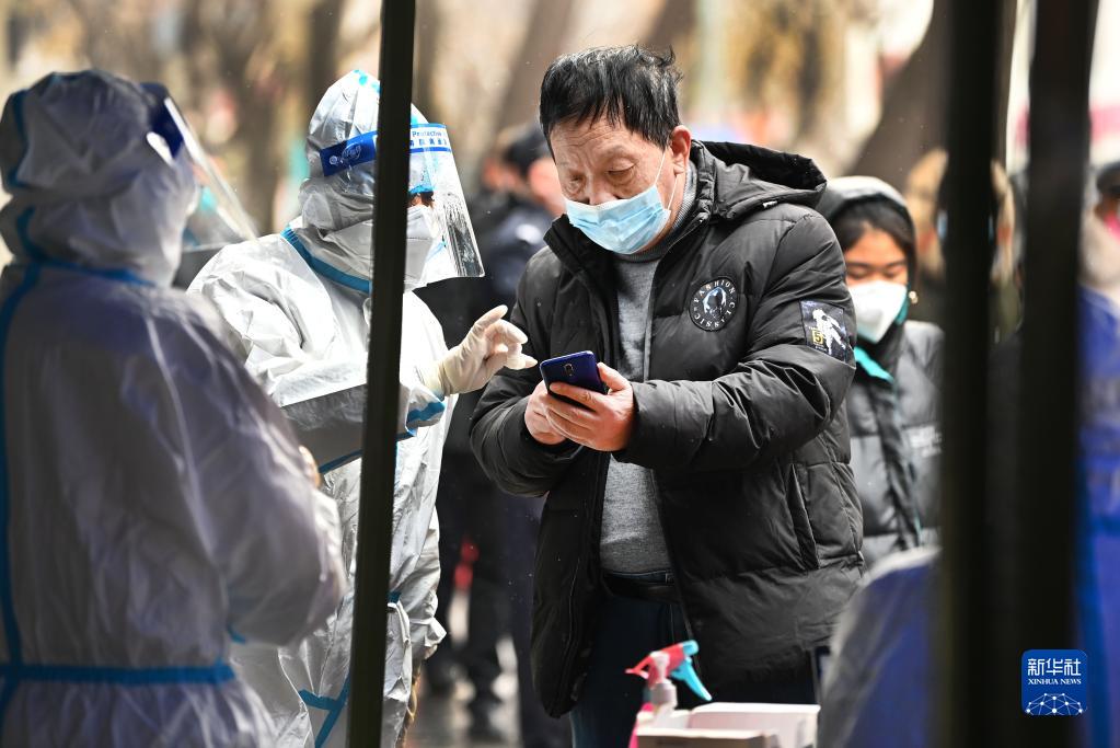 12月25日,防疫人員在西安市新城區皇城西路檢測點指導市民掃碼檢測。 當日,西安市迎來雨雪天氣,全市小區(村)、單位實行封閉化管理,隨處可見堅守在各小區出入口的工作人員。雖然疫情讓這座城市按下暫停鍵,但是人們的生活仍在繼續:核酸檢測按時按規有序進行,一線工作者盡心盡力為民服務,所有市民按規居家抗疫,糧、油、肉、菜、蛋、奶等11類生活必需品市場供應充足,公共區域環境消殺頻次增加,整座城市安靜有序。 新華社記者 陶明 攝