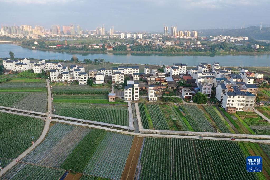 這是廣西田東縣平馬鎮四平村的蔬菜基地和民居風貌(無人機照片,11月4日攝)。 新華社記者 陸波岸 攝