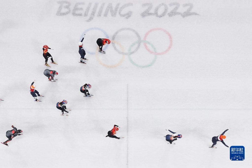 2月13日,中國隊選手范可新(下右三)在比賽中沖線。