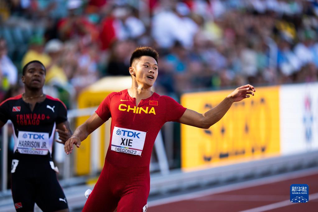 7月18日,謝震業在預賽中沖過終點。新華社記者 王迎 攝