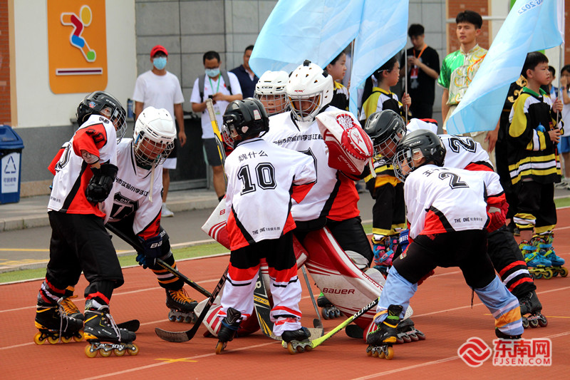 2022年福建省第十七屆運(yùn)動會青少年部社會俱樂部組輪滑冰球比賽參賽隊伍。東南網(wǎng)記者 薛逸群 攝