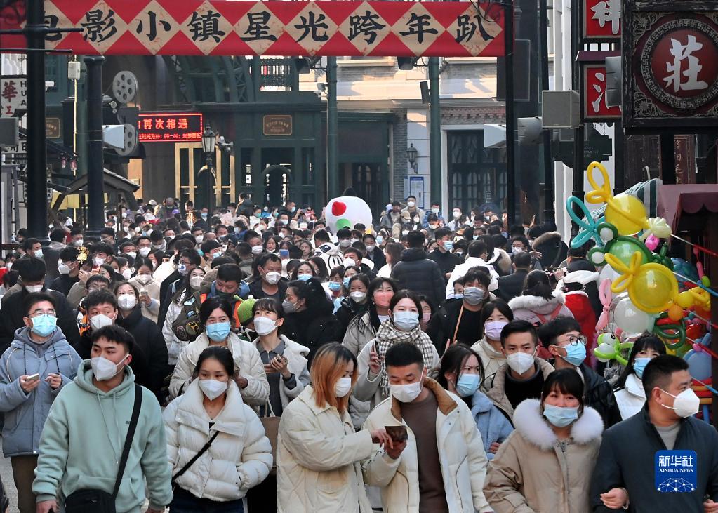 2022年12月31日,游客在位于鄭州市中牟縣的電影小鎮(zhèn)里游玩。