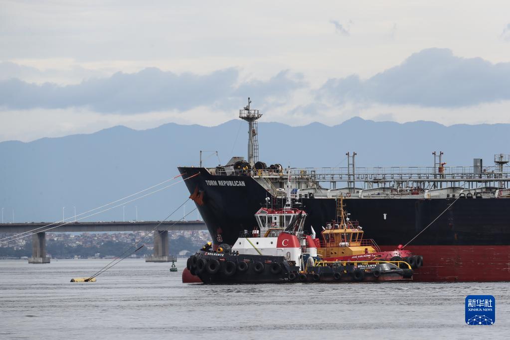 這是1月4日在巴西里約熱內盧瓜納巴拉灣拍攝的一艘集裝箱貨輪。 巴西發展、工業、商業與服務業部2日公布的數據顯示,2022年,該國貿易順差增至623億美元,創1989年此項統計開始以來的最高紀錄。 新華社記者 王天聰 攝