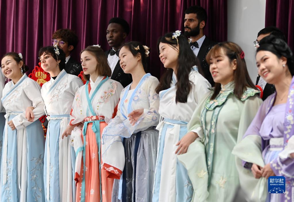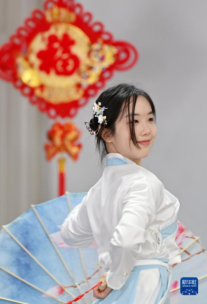 新華全媒+|留學生 穿漢服——彩排節目迎春節