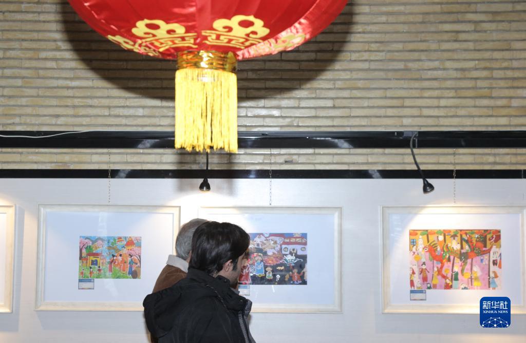 1月4日,在伊朗首都德黑蘭,人們參觀首屆“印象中國——伊朗青少年繪畫比賽”作品展。