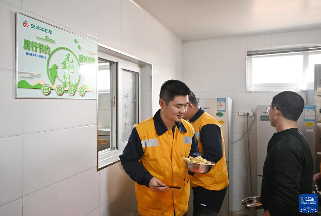 1月6日,“大學生工區”的職工在食堂排隊打飯。新華社記者 李然 攝