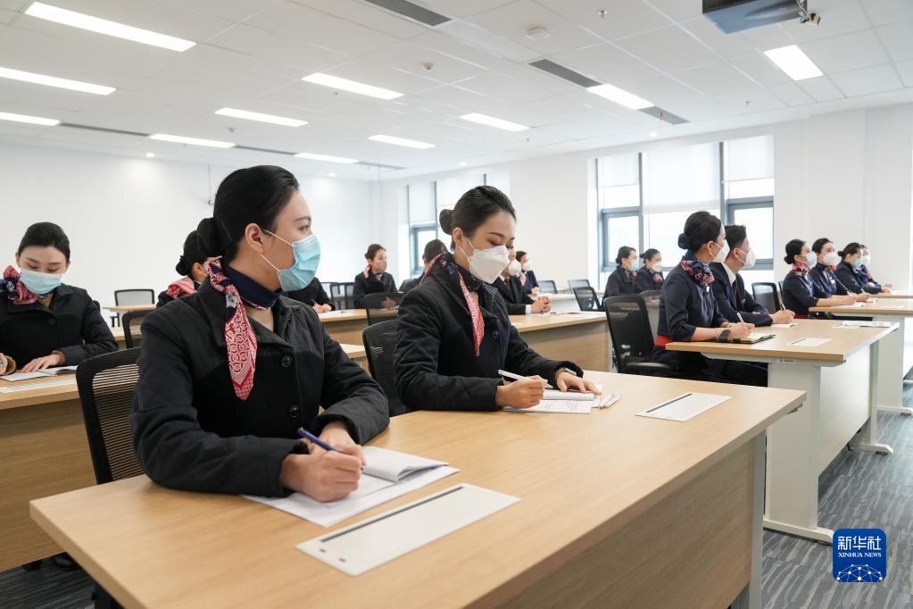 在中國商飛上海飛機客戶服務有限公司,東航的C919飛機乘務員在接受培訓(1月6日攝)。