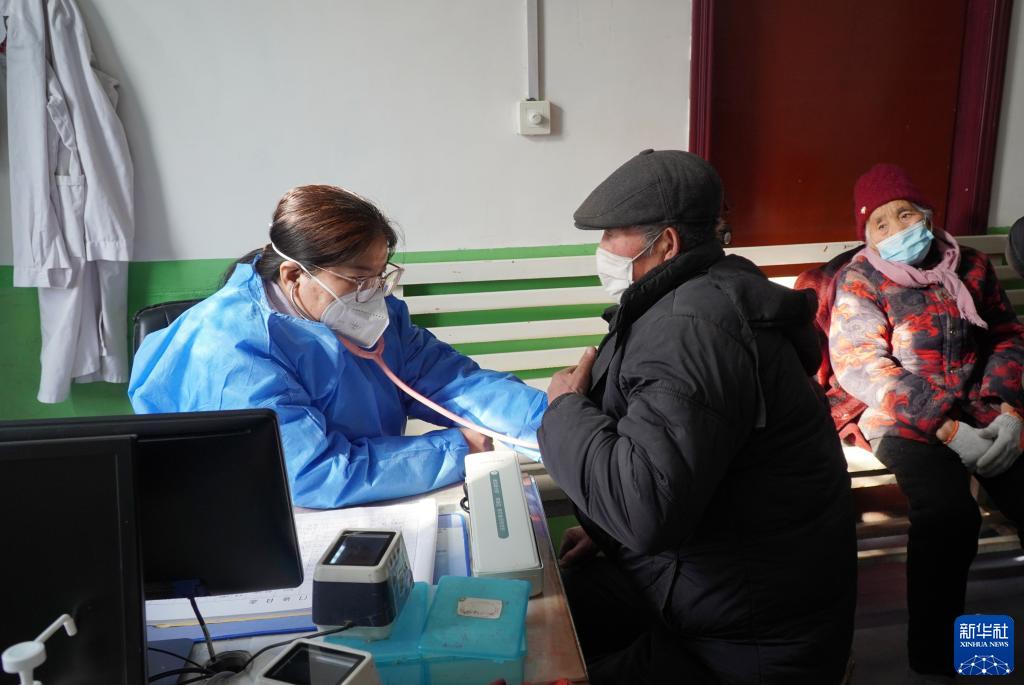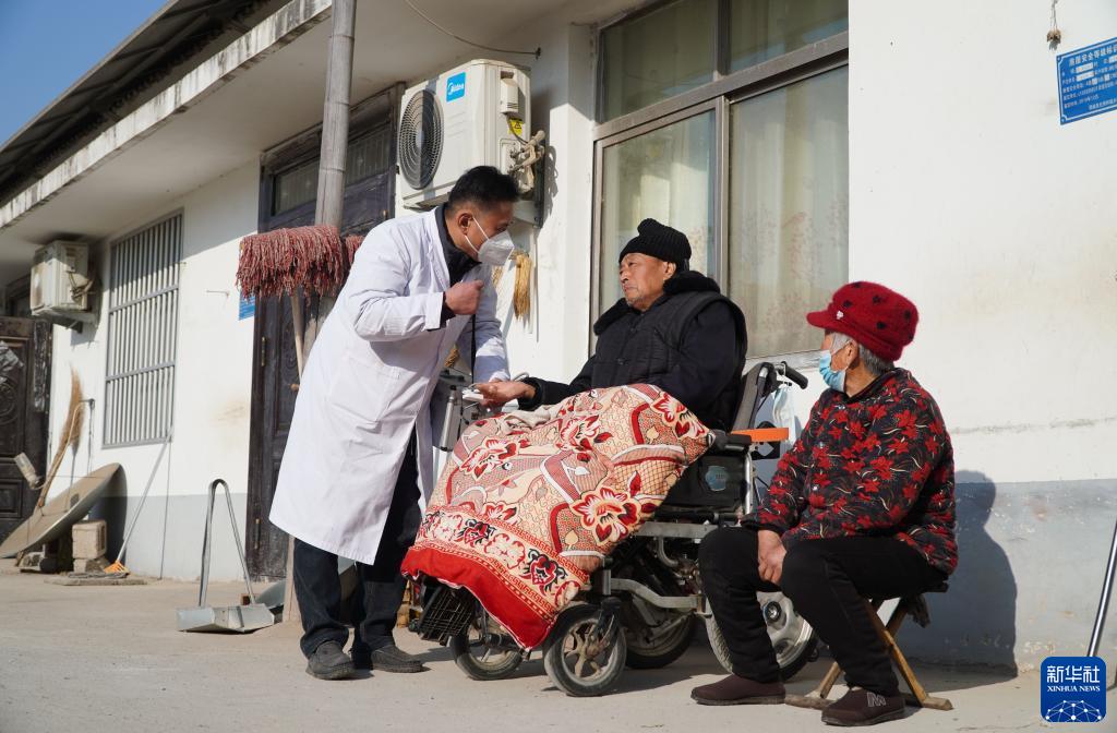 1月10日,在山東省鄆城縣郭屯鎮邵集村,村衛生室的全科醫生楊延秋上門為78歲老人楊印武檢查身體。 為加強農村地區醫療健康服務,山東對農村地區老年人深入開展健康摸排,組建3.2萬個家庭醫生團隊,同時利用醫聯體、醫共體和城市醫療集團,縣鄉村三級醫療機構協同聯動,保障農村群眾用醫用藥。 新華社記者 徐速繪 攝