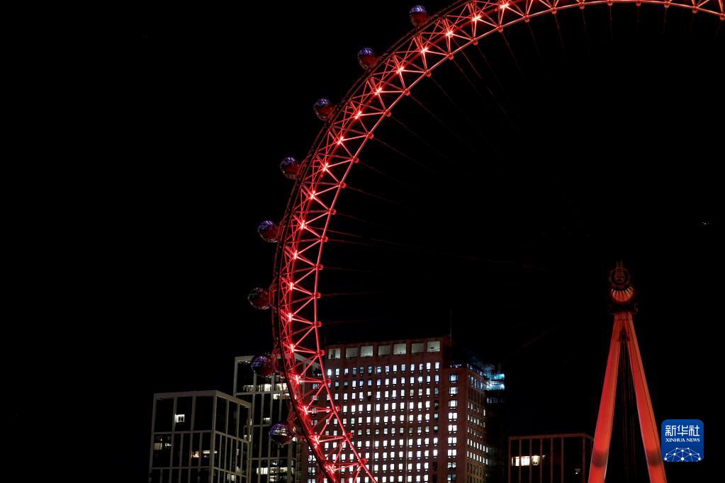 當晚,英國倫敦地標建筑、巨型摩天輪“倫敦眼”亮起紅色燈光,迎接中國農歷新年的到來。