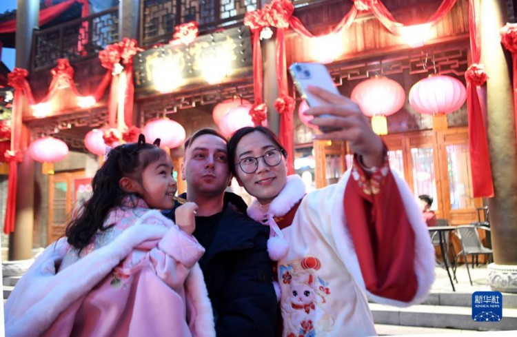 1月13日,喬丹與女兒艾潤在洛陽市洛邑古城內游玩。 來自英國謝菲爾德的喬丹是洛陽市第二外國語學校的一名外教。今年33歲的他自中學時代就對中國充滿向往。2013年,他如愿來中國旅游,被千年古都洛陽深深吸引。 “我本來計劃在洛陽任教一年就返回英國,沒想到這里邂逅了愛情。”說著,喬丹臉上洋溢起幸福的笑容,“我結識了一位美麗的河南姑娘,然后決定留在洛陽,現在我們的女兒都快5歲了。” 春節臨近,古都洛陽大街小巷年味漸濃,喬丹和妻子帶著女兒一起逛古城、品嘗當地美食、拍攝漢服照片、體驗中國傳統茶藝,感受當地傳統文化和濃濃年味。 “我們這幾天還準備裝飾下屋子,貼窗花、掛燈籠,喜氣洋洋過春節。”妻子范夢佳說。 新華社記者 郝源 攝