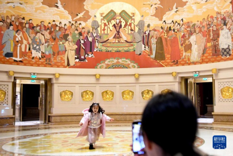 1月13日,女兒艾潤在隋唐洛陽城國家遺址公園天堂景區內游玩。 新華社記者 郝源 攝