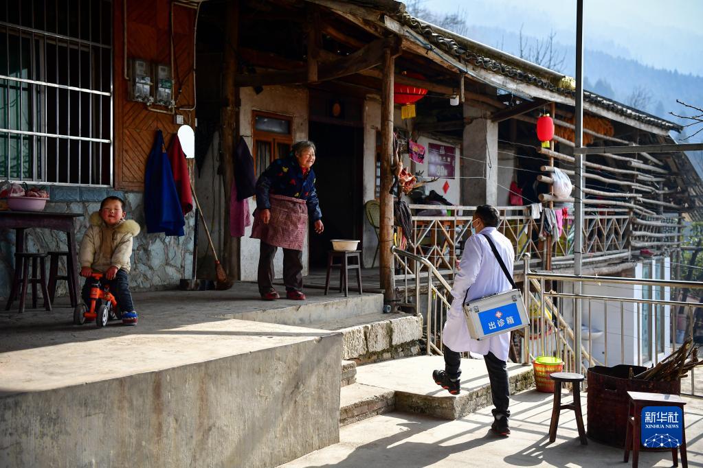 1月19日,在北川縣曲山鎮石椅村,村醫趙太安入戶走訪重點人群。 近期,四川省綿陽市北川羌族自治縣強化縣鄉村三級醫療機構屬地責任,依托村衛生室和村醫,加強農村老幼病殘孕等重點人群醫療服務。春節前夕,北川縣組織村醫有計劃、分步驟地聯系走訪重點人群,當好農村群眾健康“守門人”,保障群眾平安祥和過大年。 新華社記者 張超群 攝