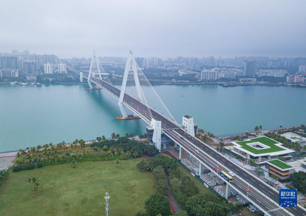 1月22日拍攝的海口世紀大橋(無人機照片)。