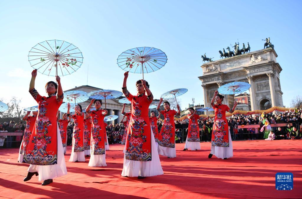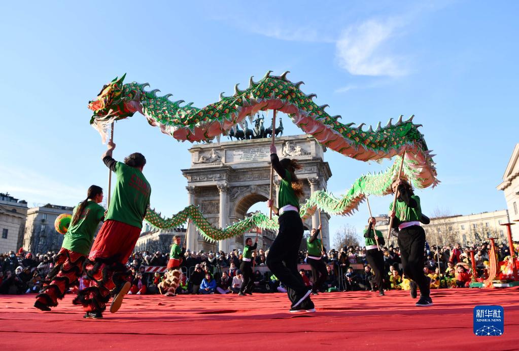 1月22日,在意大利米蘭,演員在春節聯歡活動上表演。 當日,由意大利米蘭華僑華人舉辦的“喜迎新春、舞龍舞獅”大聯歡活動成功上演,吸引了眾多民眾前來參與,共同慶祝中國農歷新年。 新華社記者 金馬夢妮 攝