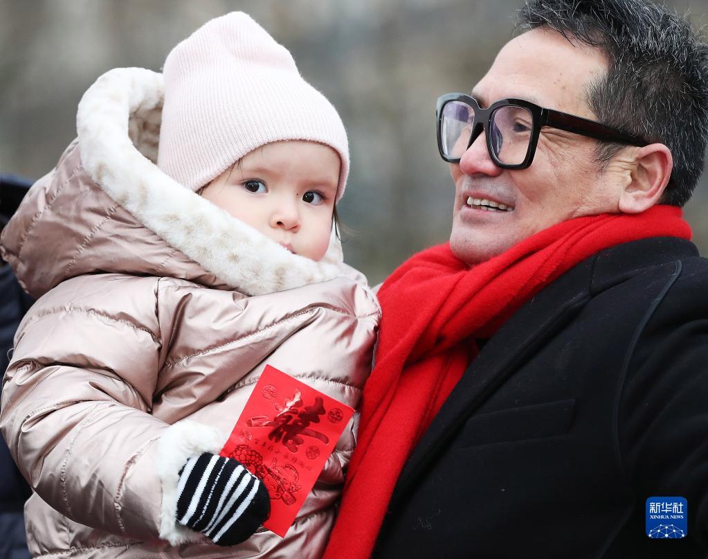 1月22日,在法國巴黎共和國廣場,市民觀看兔年春節彩妝游行。 當日,法國巴黎舉行盛大兔年春節彩妝游行。該活動由當地多個華僑華人社團共同組織,慶祝農歷兔年春節的到來,吸引眾多市民前來參觀。 新華社記者 高靜 攝