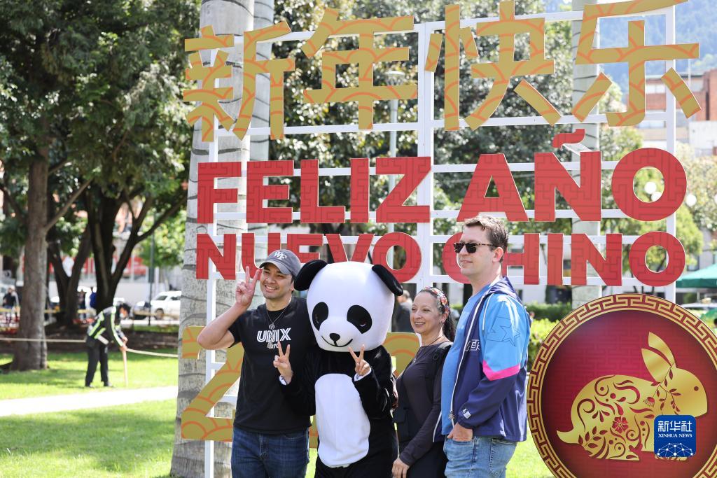 1月22日,在哥倫比亞首都波哥大市中心的93公園,人們與新年字標合影留念。 當日,哥中投資貿易商會在中國駐哥使館、孔子學院等的大力支持下,舉辦“歡樂春節”廟會,吸引眾多民眾參加。 新華社記者 周盛平 攝
