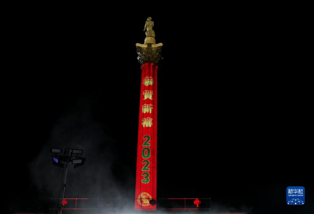 1月21日晚,英國倫敦特拉法加廣場納爾遜紀念柱的柱身出現“恭賀新禧2023”字樣。 21日晚,倫敦特拉法加廣場點亮兔子彩燈,納爾遜紀念柱的柱身出現“恭賀新禧2023”字樣,迎接中國農歷新年。 新華社記者 李穎 攝