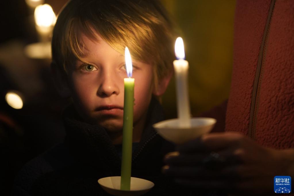 1月27日,一個男孩在美國加利福尼亞州半月灣市舉行的守夜活動中哀悼槍擊事件遇難者。