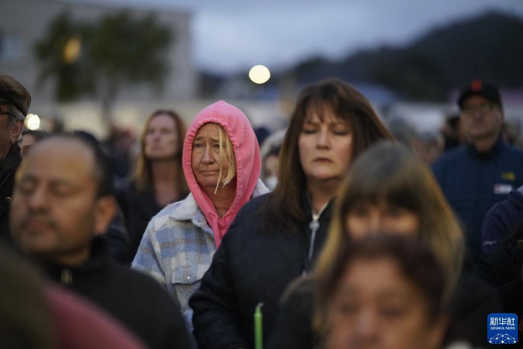 1月27日,人們在美國加利福尼亞州半月灣市舉行的守夜活動中哀悼槍擊事件遇難者。 1月23日下午,美國加州半月灣市發生槍擊事件,造成7人死亡、1人受傷。 新華社記者 吳曉凌 攝