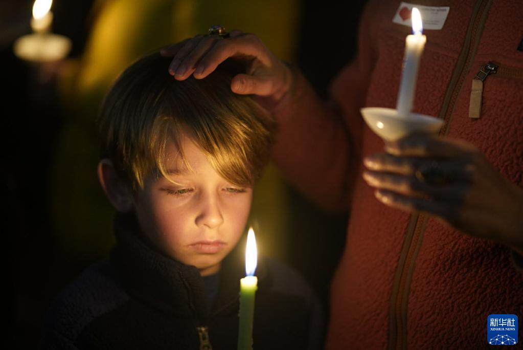 1月27日,一個男孩在美國加利福尼亞州半月灣市舉行的守夜活動中哀悼槍擊事件遇難者。 1月23日下午,美國加州半月灣市發生槍擊事件,造成7人死亡、1人受傷。 新華社記者 吳曉凌 攝