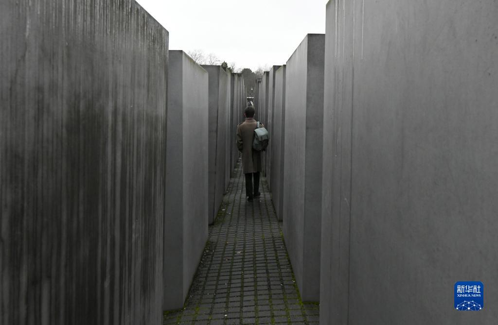1月27日,一名男子在德國柏林的歐洲被害猶太人紀念碑參觀。
