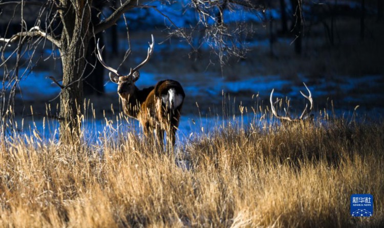 1月29日,一只馬鹿在灤河源國(guó)家森林公園內(nèi)覓食。新華社記者 連振 攝