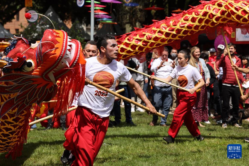 1月22日,在哥倫比亞首都波哥大市中心的93公園,演員表演舞龍。 當(dāng)日,哥中投資貿(mào)易商會(huì)在中國駐哥使館、孔子學(xué)院等的大力支持下,舉辦“歡樂春節(jié)”廟會(huì),吸引眾多民眾參加。 新華社記者 周盛平 攝