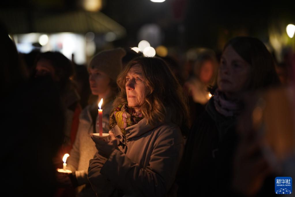 1月27日,人們?cè)诿绹永D醽喼莅朐聻呈信e行的守夜活動(dòng)中哀悼槍擊事件遇難者。 1月23日下午,美國加州半月灣市發(fā)生槍擊事件,造成7人死亡、1人受傷。 新華社記者 吳曉凌 攝