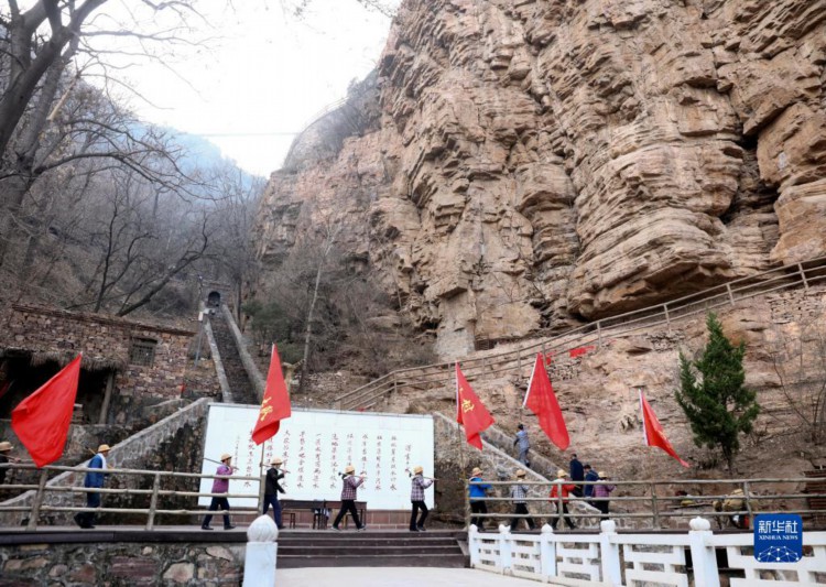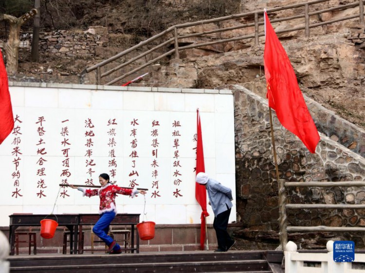 2月5日,演員在紅旗渠景區(qū)的情景演出中表演。 當(dāng)日是農(nóng)歷正月十五元宵節(jié),在河南安陽林州市,不少市民選擇到紅旗渠景區(qū)參觀游覽,感受紅色文化。 新華社記者 蘭紅光 攝