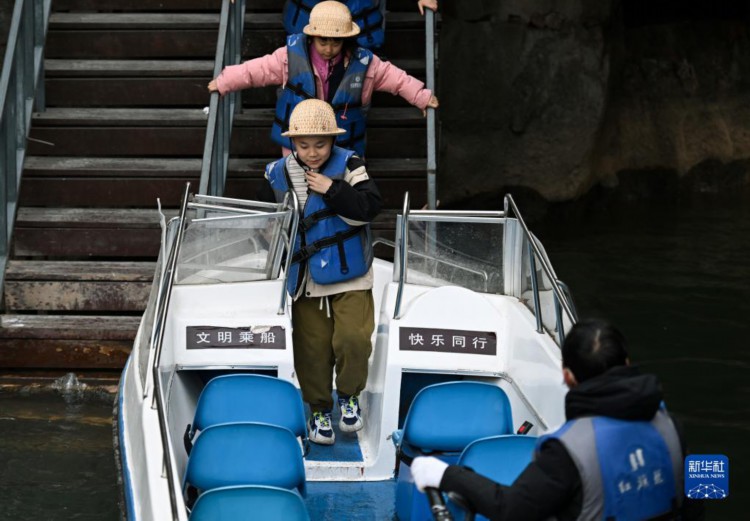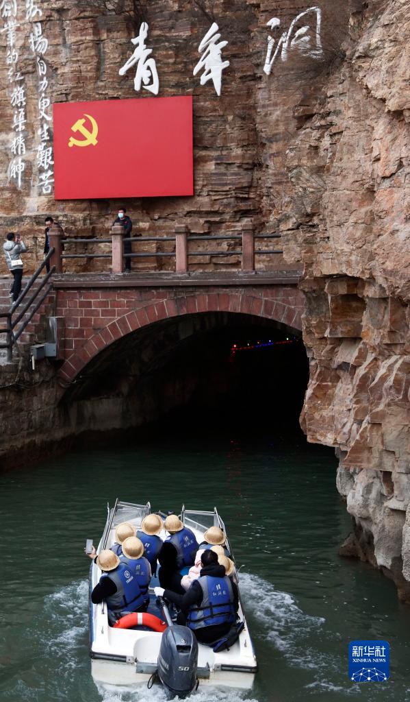 2月5日,游客乘船游覽旗渠景區(qū)青年洞。 當(dāng)日是農(nóng)歷正月十五元宵節(jié),在河南安陽林州市,不少市民選擇到紅旗渠景區(qū)參觀游覽,感受紅色文化。 新華社記者 蘭紅光 攝