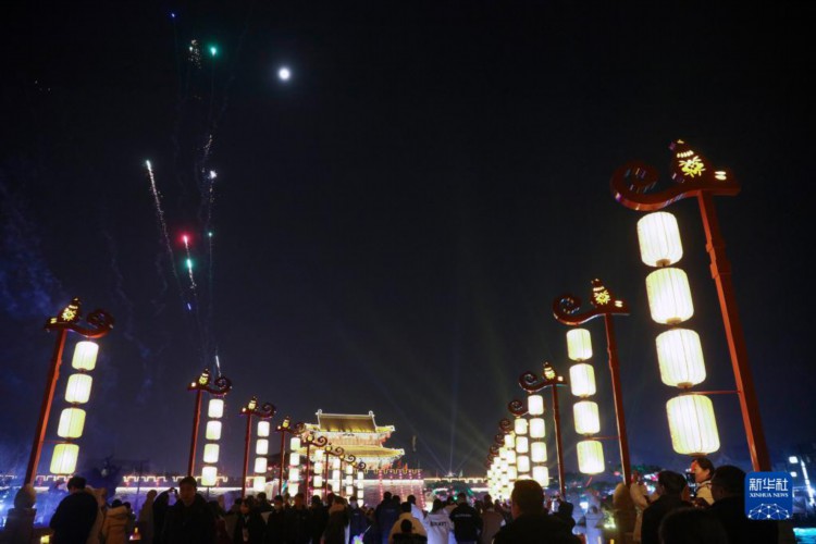 這是2月5日拍攝的浚縣古城夜景。 當日是農歷正月十五元宵節,在河南省浚縣古城里,古色古香的建筑配合璀璨燈光,吸引眾多游客沉醉其中,度過難忘的元宵夜。 新華社記者 宋彥樺 攝