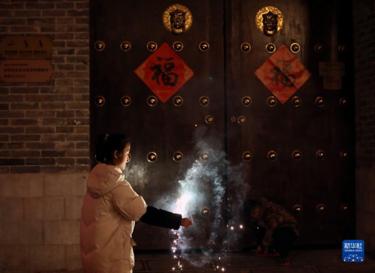 2月5日,小朋友在浚縣古城燃放煙花。 當日是農歷正月十五元宵節,在河南省浚縣古城里,古色古香的建筑配合璀璨燈光,吸引眾多游客沉醉其中,度過難忘的元宵夜。 新華社記者 蘭紅光 攝