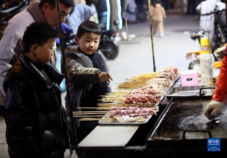 2月5日,游客駐足浚縣古城的一處小吃攤前。