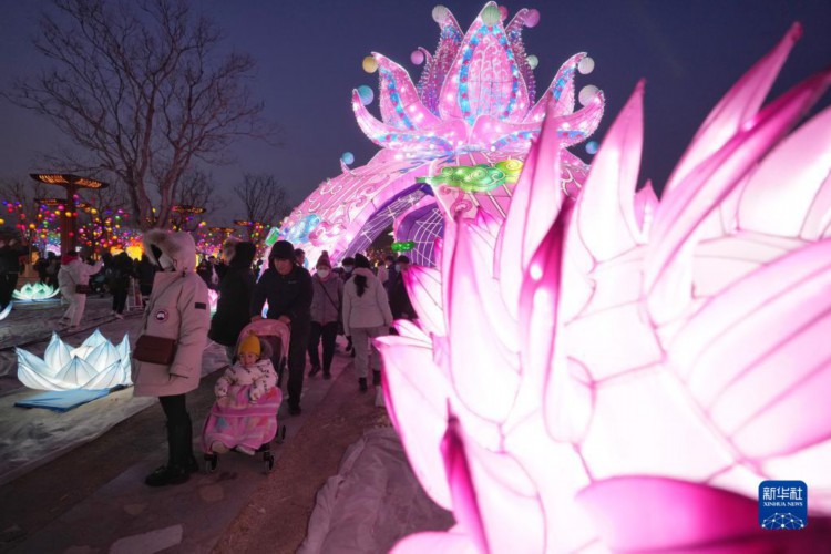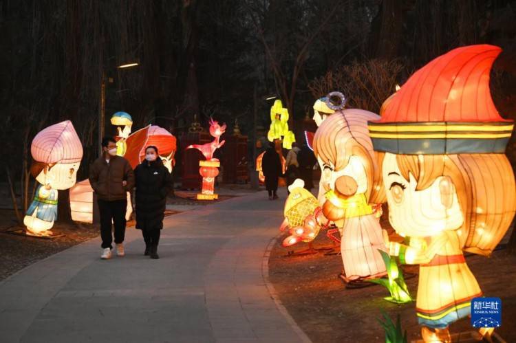 2月5日,游客在北京南宮五洲植物樂園觀賞花燈。 當日是元宵節,游客來到位于北京市豐臺區的南宮五洲植物樂園欣賞花燈,歡度佳節。 新華社記者 任超 攝