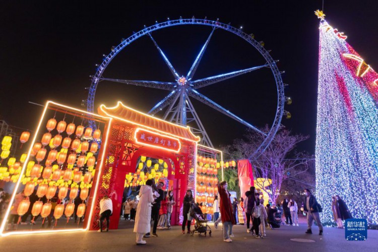 2月4日,游客在錦江樂園“盛世唐燈市集”上游玩。 在上海錦江樂園舉辦的“盛世唐燈市集”主題活動上,游客逛集市、賞花燈、品美食,觀看霓裳飛天舞、舞獅等民俗表演,體驗豐富多彩的元宵活動。 新華社記者 王翔 攝