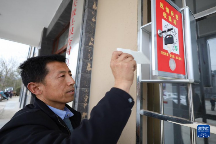 在隴南市徽縣銀杏樹(shù)鎮(zhèn)高坪村,“民事直說(shuō)委員會(huì)”成員取出“民情民意”收集箱里的群眾來(lái)信(2月11日攝)。