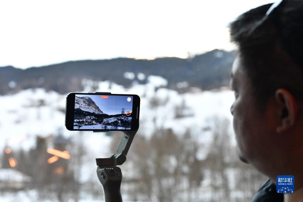 2月14日,一名中國游客在瑞士少女峰拍攝雪山景色。 2月6日起,中國試點恢復赴瑞士等20個國家出境團隊旅游和“機票+酒店”業務。 新華社記者 連漪 攝