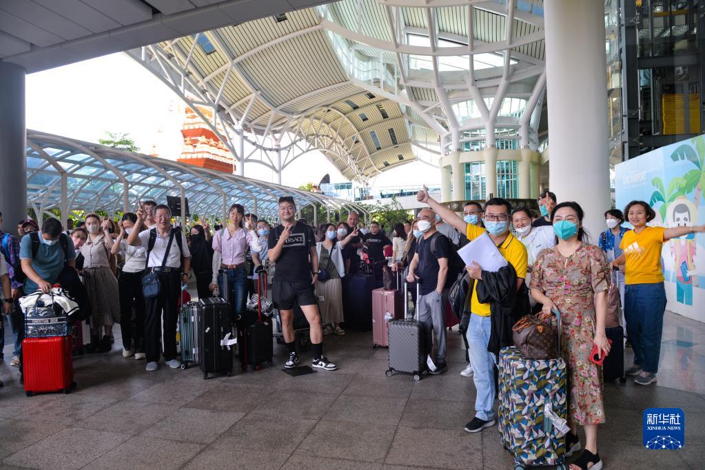 2月12日,一行從深圳出發的中國游客抵達印度尼西亞巴厘島伍拉萊國際機場。 1月22日以來,深圳-巴厘島的包機游直航航班已運行4班,杭州-雅加達-巴厘島旅游航線已開通,福州-巴厘島直航航線即將開通,中國大陸赴印尼巴厘島旅游正有序恢復。 新華社記者 徐欽 攝
