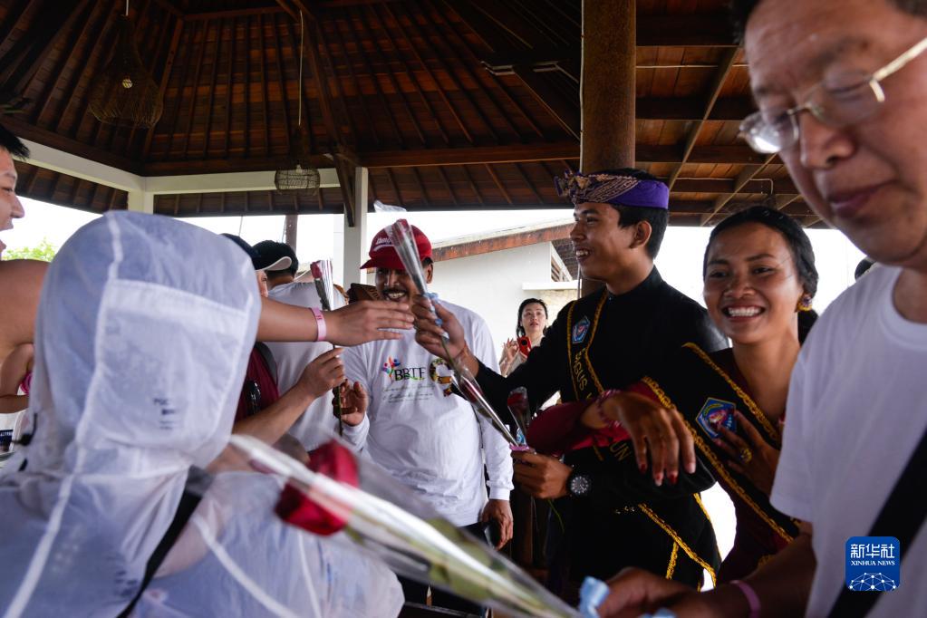 2月14日,在印度尼西亞巴厘省倫邦岸島,當地旅游業工作人員為中國游客送上鮮花。 1月22日以來,深圳-巴厘島的包機游直航航班已運行4班,杭州-雅加達-巴厘島旅游航線已開通,福州-巴厘島直航航線即將開通,中國大陸赴印尼巴厘島旅游正有序恢復。 新華社記者 徐欽 攝 |