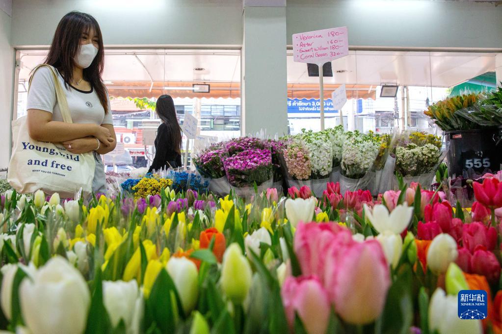 2月21日,顧客在泰國曼谷帕空鮮花市場挑選來自云南的鮮花。 在泰國曼谷帕空鮮花市場,來自云南的鮮花隨處可見。云南鮮花經過采摘、修枝、包裝等過程,僅需近40小時的冷鏈運輸便可抵達曼谷。從瀾滄江邊到湄南河畔,作為“云南名片”的鮮花,化作絲路花雨,香飄世界。 新華社記者 王騰 攝