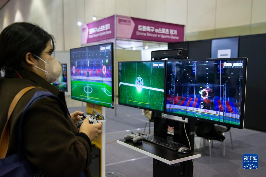 2月23日,參觀者在韓國釜山舉辦的2023韓國無人機展上體驗無人機游戲。 當日,韓國最大規模的無人機展覽會——2023韓國無人機展在釜山國際會展中心拉開帷幕,活動將持續至本月25日。本次展覽會共有172家公司參展,中國無人機品牌大疆也參加了此次展覽會,并吸引了眾多參觀者。 新華社記者 王益亮 攝