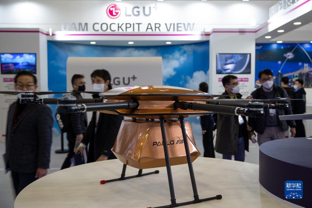 這是2月23日在韓國釜山舉辦的2023韓國無人機展上拍攝的無人機。 當日,韓國最大規模的無人機展覽會——2023韓國無人機展在釜山國際會展中心拉開帷幕,活動將持續至本月25日。本次展覽會共有172家公司參展,中國無人機品牌大疆也參加了此次展覽會,并吸引了眾多參觀者。 新華社記者 王益亮 攝