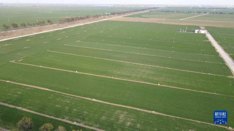 2月21日拍攝的太和縣淙祥現代農業種植專業合作社里的高產攻關示范田(無人機照片)。