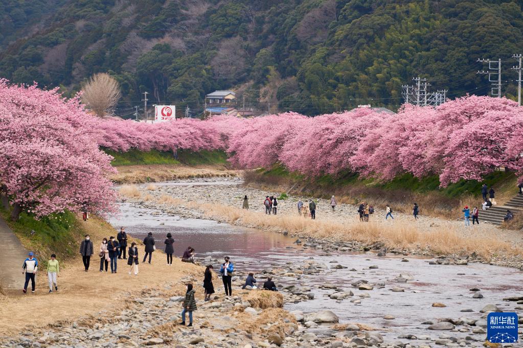 近日,日本靜岡縣河津町的河津櫻滿開,吸引眾多游客前來觀賞。河津櫻于1955年在河津町被發現,以開花早、花期長而聞名。