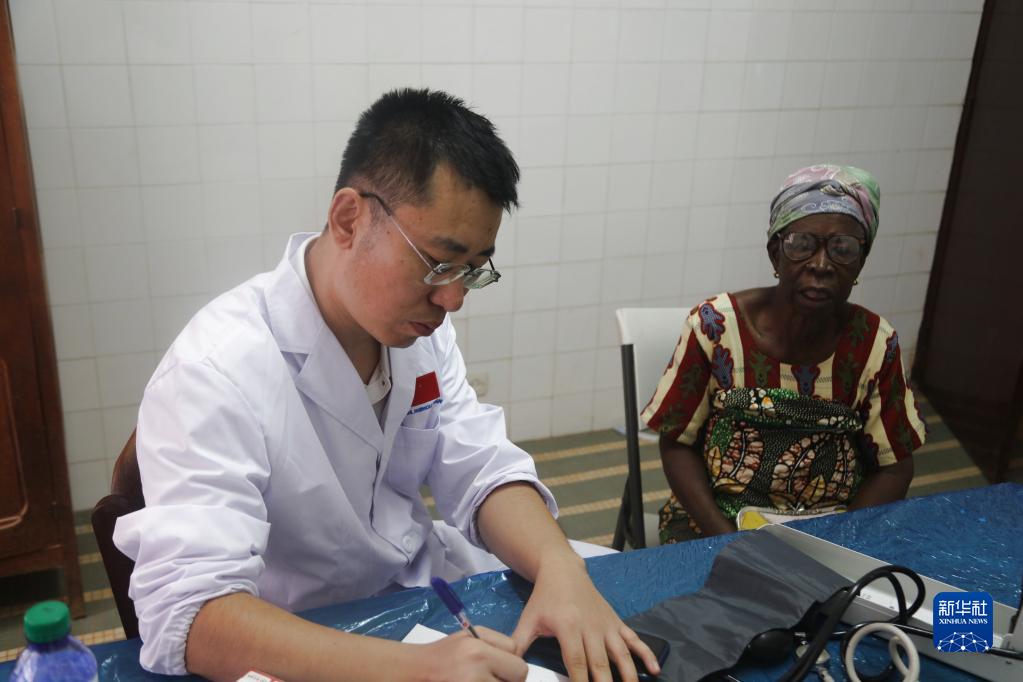 2月25日,在多哥卡拉市皮亞區(qū)醫(yī)療中心,中國第25批援多哥醫(yī)療隊醫(yī)生為當(dāng)?shù)夭∪嗽\療。